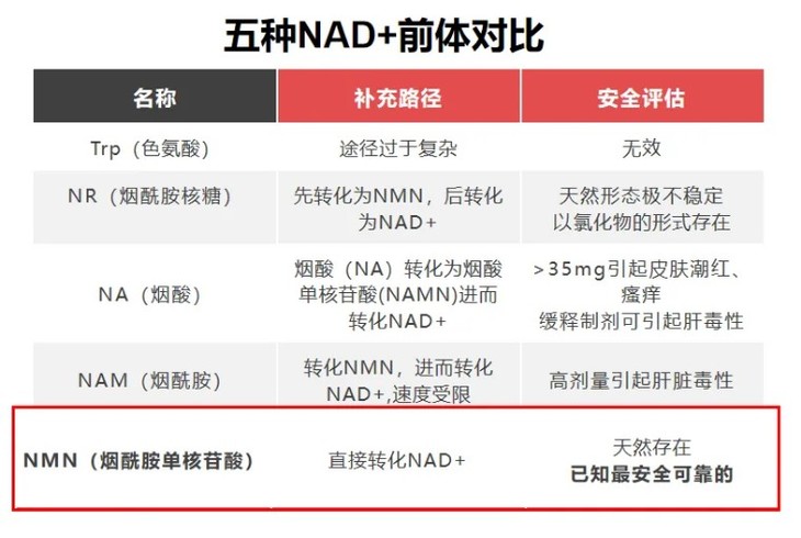而NMN正是NAD+补剂其中之一,同时它存在于平时吃的蔬菜水果中,也是目前科学家,发现的最安全、最稳定也是最直接的NAD+前体之一。