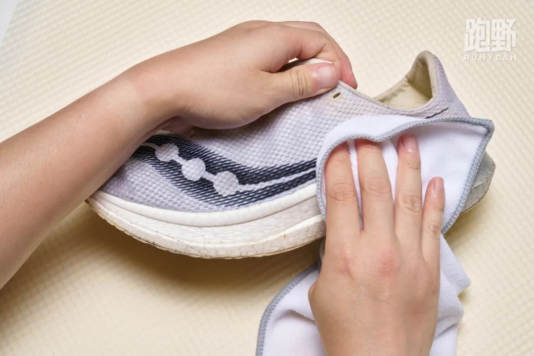 在跑鞋落灰的情况较为严重时,我们可以用吸尘器或者干布,对跑鞋先进行一轮“除尘”工序。
