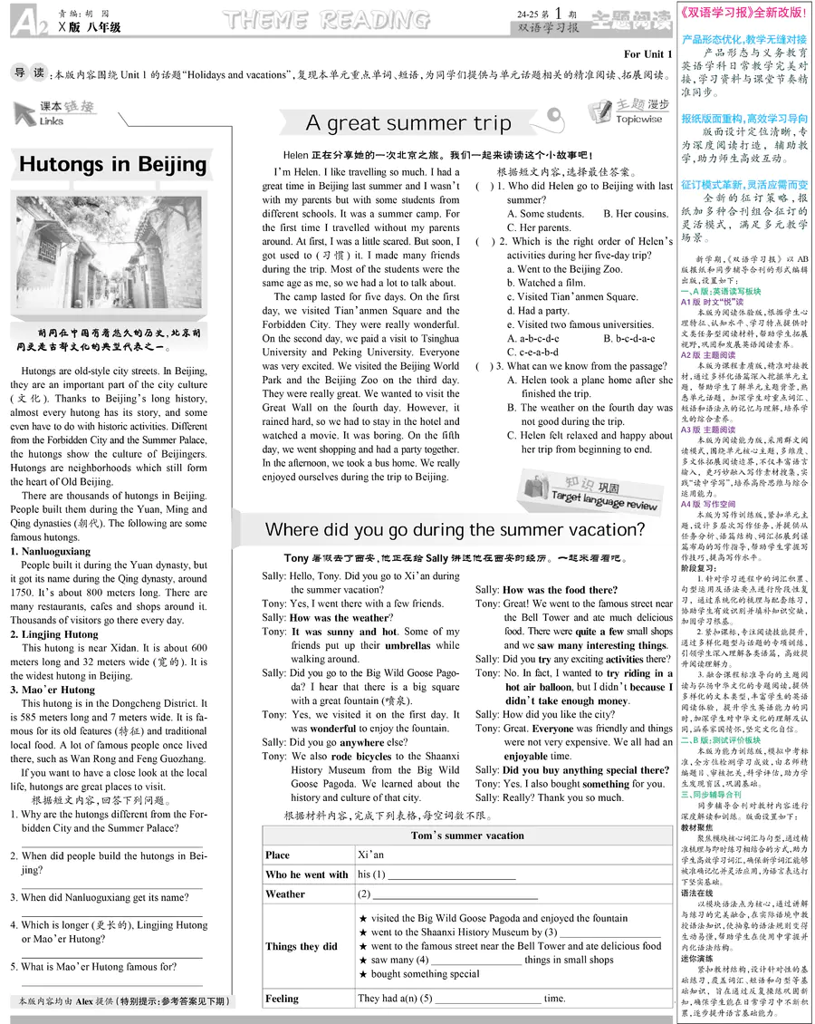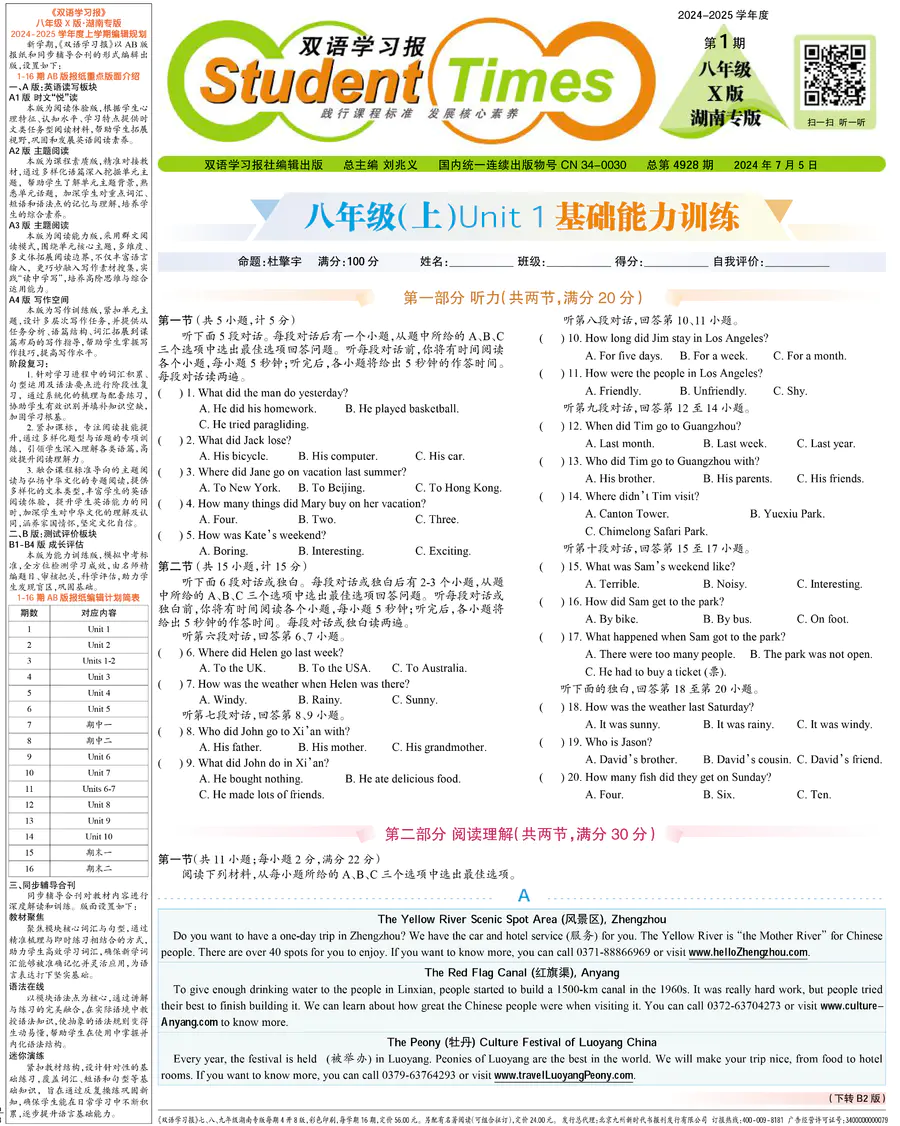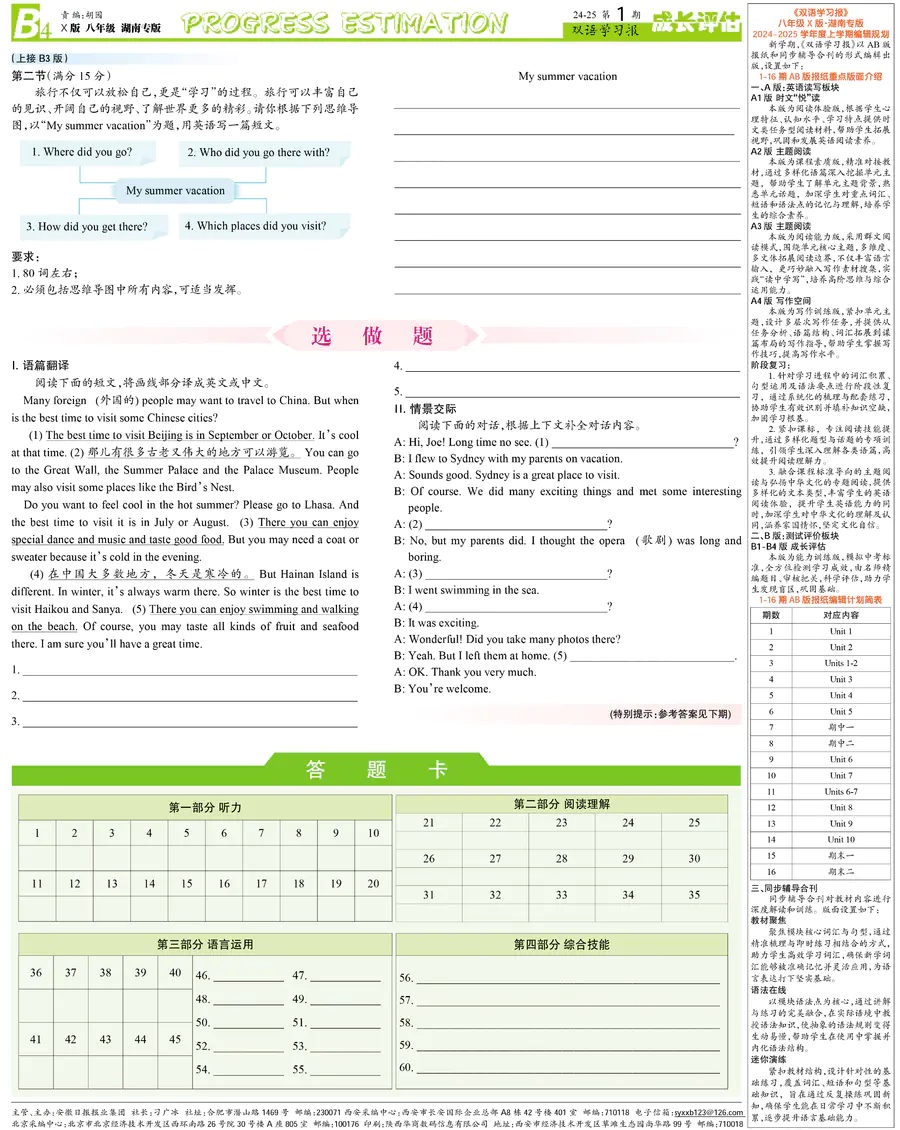 初中英语样报 八年级 X版湖南专版 第1期