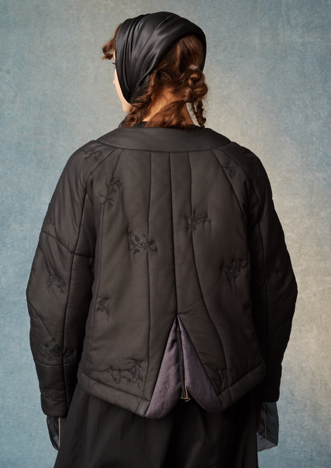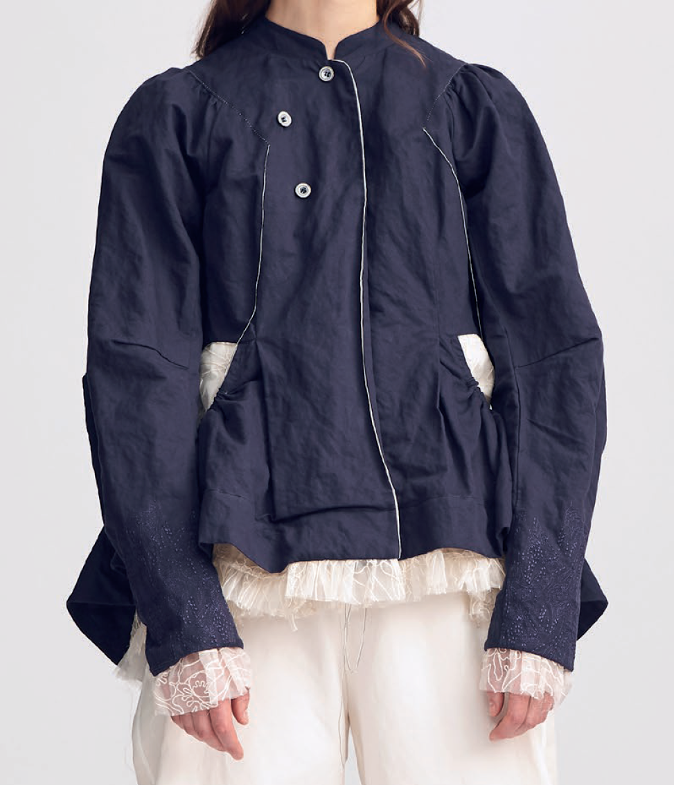 我有很多忠实的客人,习惯每一季挑几件买下来做收藏。我希望衣服和客人能一起成长,一件衣服可以穿很久。我们有的时候会找维多利亚时期的蕾丝图案,拓下来,改成刺绣缝在服装特别的位置;我们还会给面料做旧,用专业话叫“炒色”的工艺来处理面料,这样做旧感和手工感就会出来,不会看起来像流水线产品。