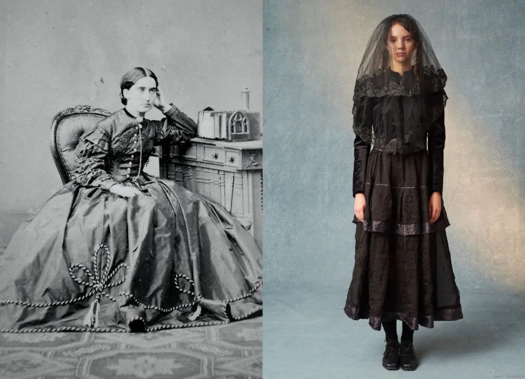 左图:1890年代维多利亚女性肖像照;右图:Renli Su 2020秋冬系列