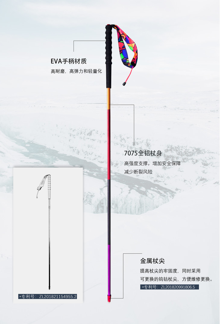 95元起!推荐理由:杖身抗扭支撑,优质7075航空铝合金材质,耐防生锈,轻盈省力,特质EVA加长手柄,吸汗排湿 舒爽防滑。