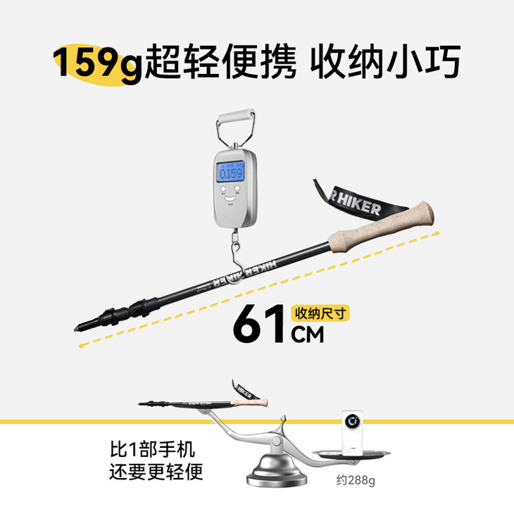 159元秒单只!推荐理由:159克超轻便携,61cm收纳小巧,方便携带与收纳。