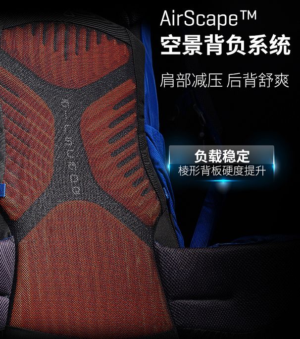 1、升级版的空景背负系统、更高的支撑性、透气性,背包更“修长”。