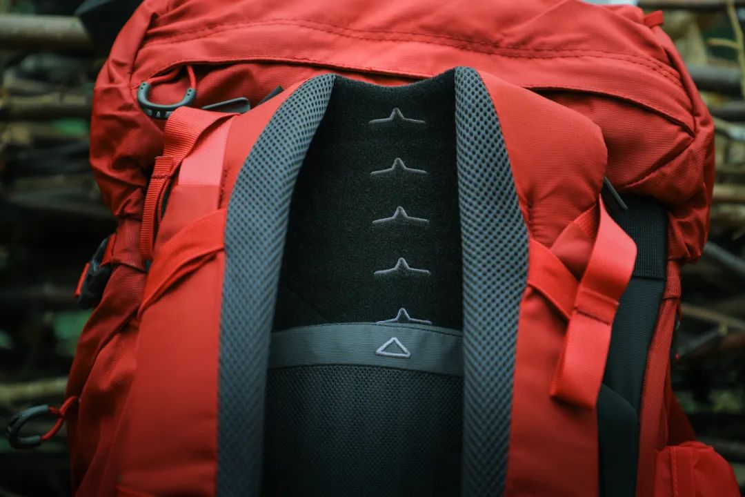 改善了之前背负偏软的弊病,同时金属框架的拉伸弧度较前代更大,背负材料采用了山脊状的高密度聚乙烯材料,网面与背板距离之间的间距由之前的5cm加深至2cm,这个距离是大部分同类型背包网面到背板距离的两倍。