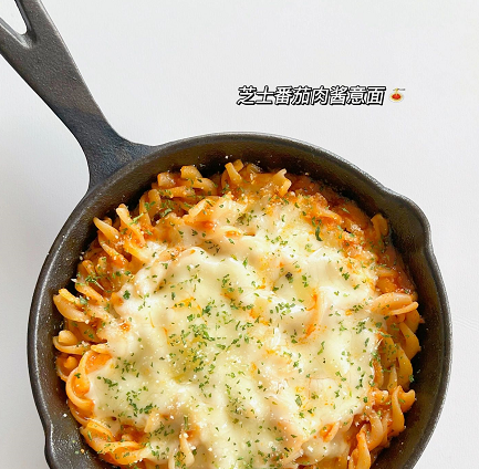 软弹爽滑的意面搭配酸甜的番茄肉酱🍅