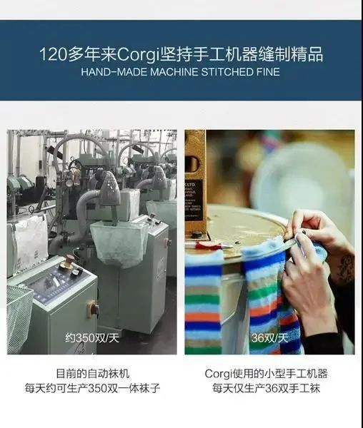 即使已经得到英国上下的一致认可,Corgi依然坚持着品质优先,从没有抛弃那些必须要手工才能达到最好的复杂制袜工艺。