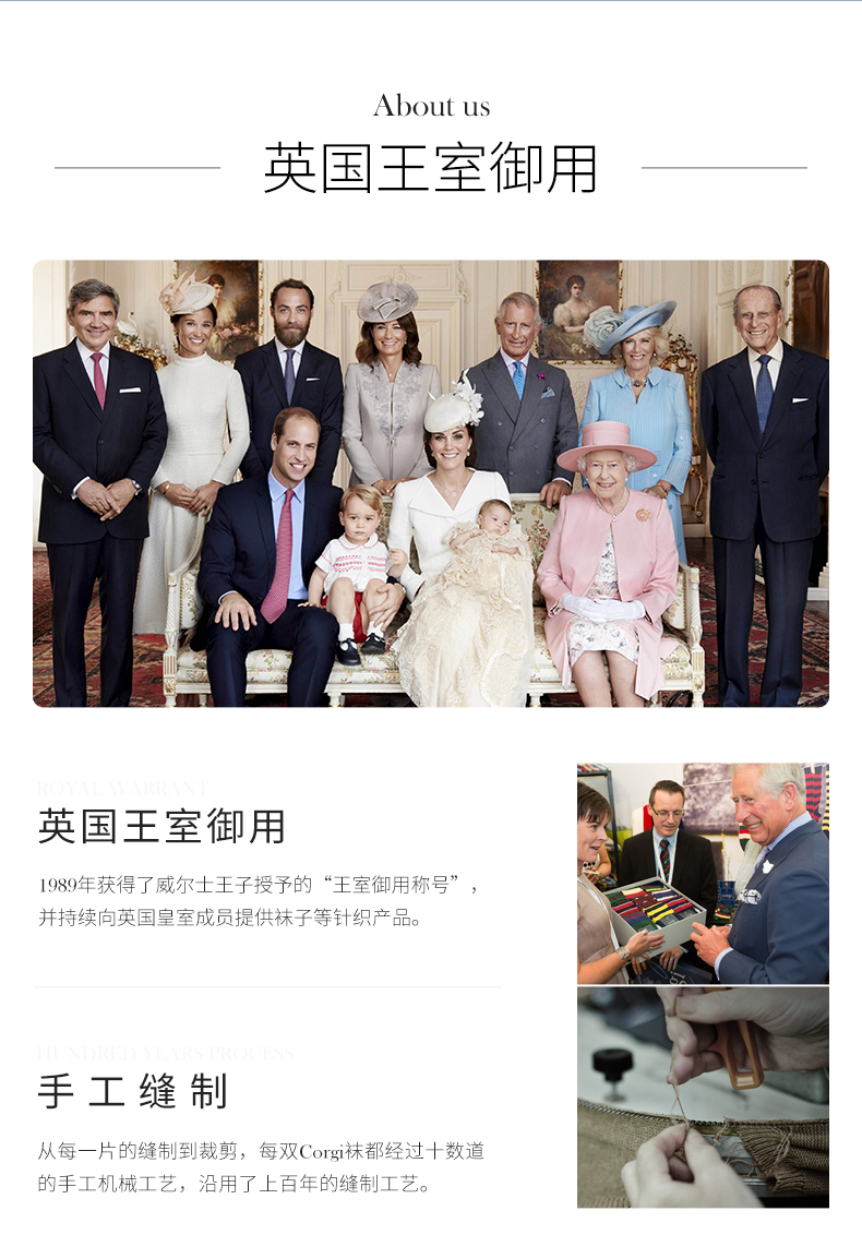 Corgi自Rhys Jones于1892年创立以来,百余年来一直专注于制作各种袜子,不仅深受顾客信赖,连英国王室都被Corgi的质量所打动。