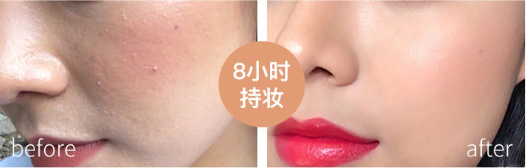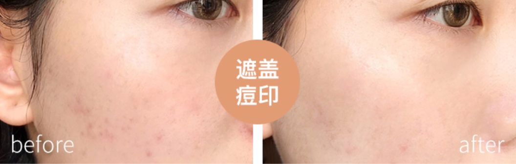 就连粗大的毛孔都几乎隐形, 真·自带磨皮效果,轻松搞定伪素颜。 遮瑕力也不错,这种泛红的痘印也能轻松遮盖起来,轻薄不闷痘。