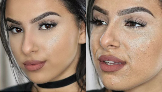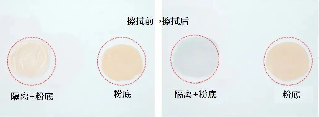 结果左边随便一擦就干净,右边还残留厚厚的粉底。
