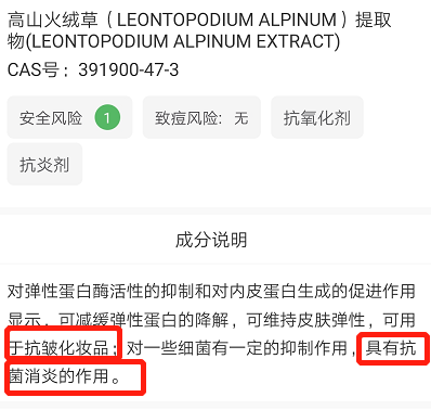 整整用了10种植物提取物,王牌成分便包装上来自南阿尔卑斯山的雪绒花。 雪绒花极强的抗氧化功效,能减少自由基和黑色素的形成,是欧洲妇女的天然美容圣品,还是瑞士的国花咧~