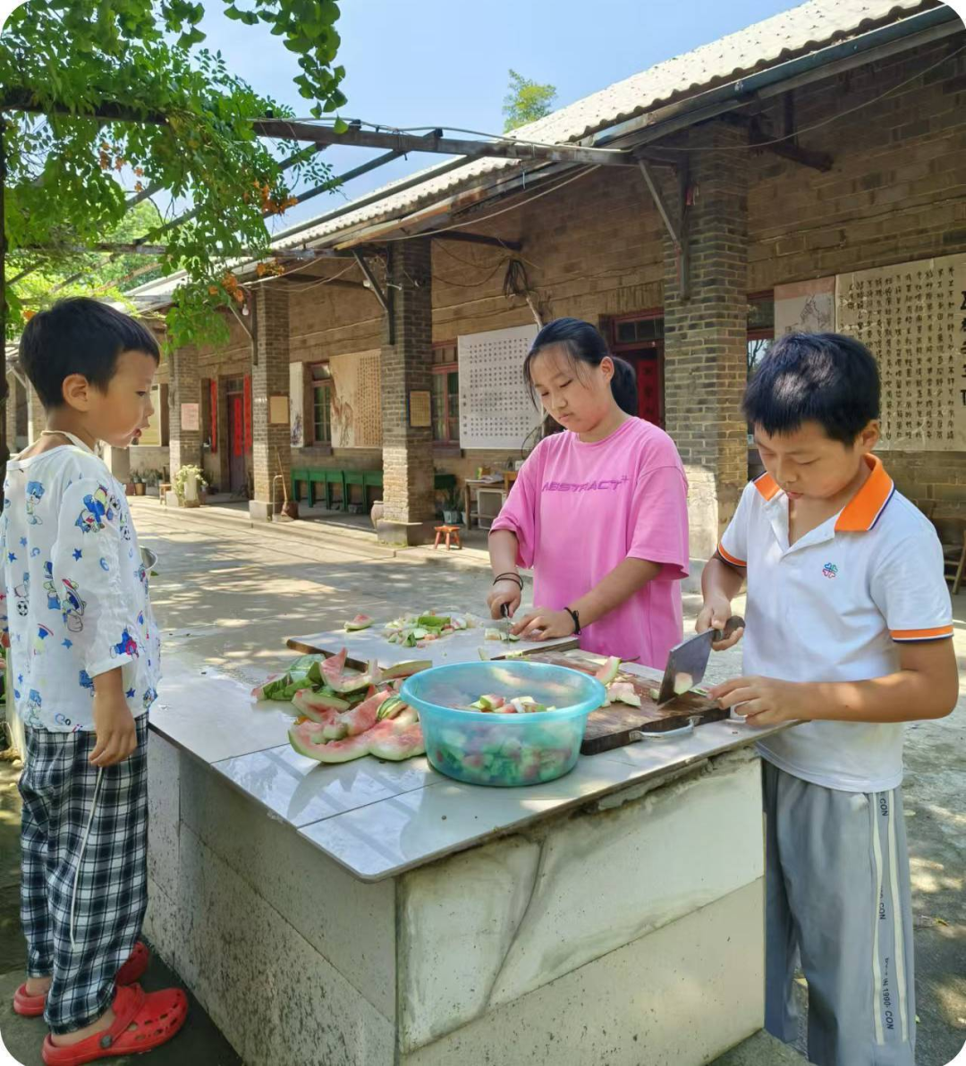 △夏令营小学员切西瓜皮