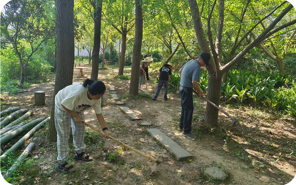 ☑ 学习劳动技能,翻地、锄草、劈柴、种植蔬菜、挖坑堆肥、做环保酵素,养护土壤。
