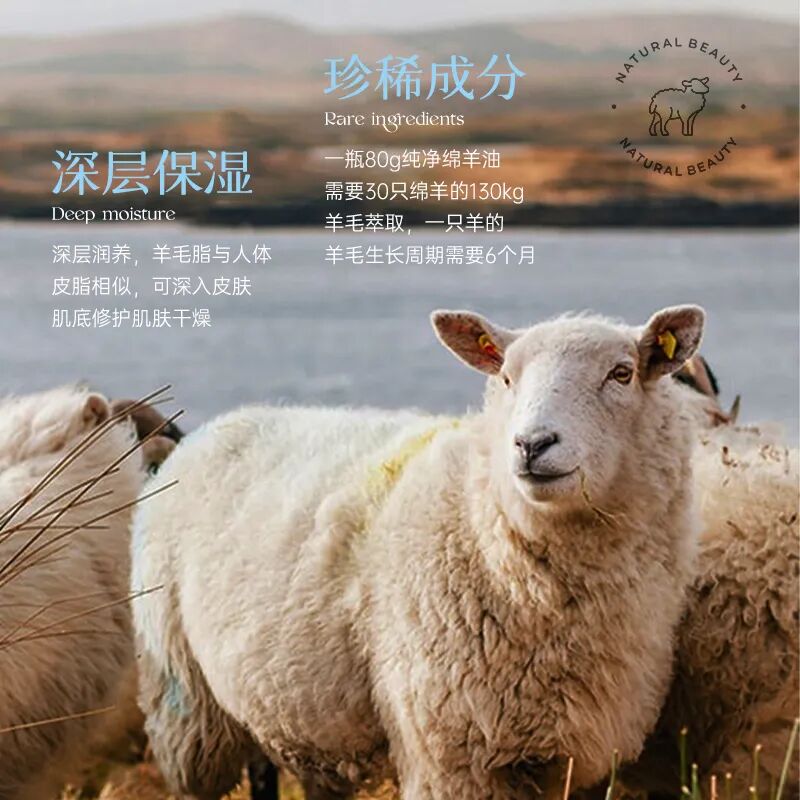 作为天然的液体黄金,300g的羊毛脂,要从30只生长了180天的绵羊身上提取,滴滴珍贵。