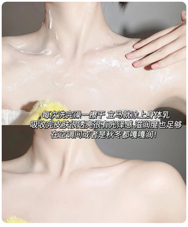 身体乳可以早晚抹一次,能让皮肤更嫩滑。