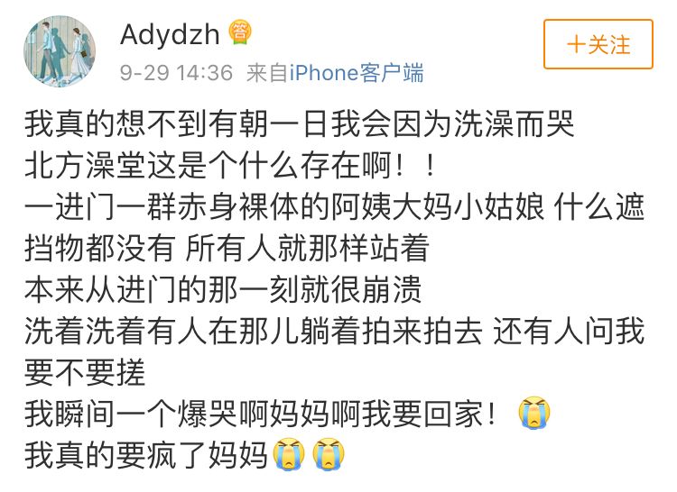 “南方人的洗澡顶多算冲凉,不算洗澡”