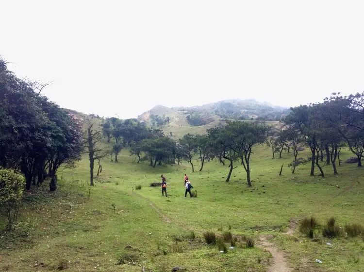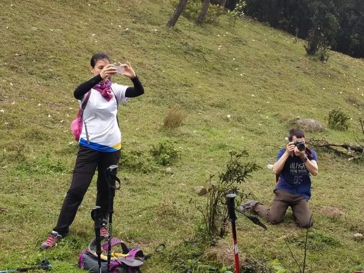 大家伙整理装备,做做登山前的拉筋动作。合照后,怀着对大草原的憧憬,快乐前进~
