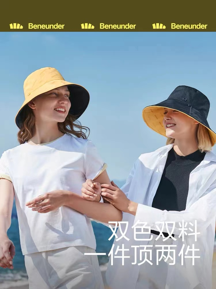 这款还不是单纯的双面防晒,而是正反都能带的,买一顶等于买了两顶不一样颜色的渔夫帽。