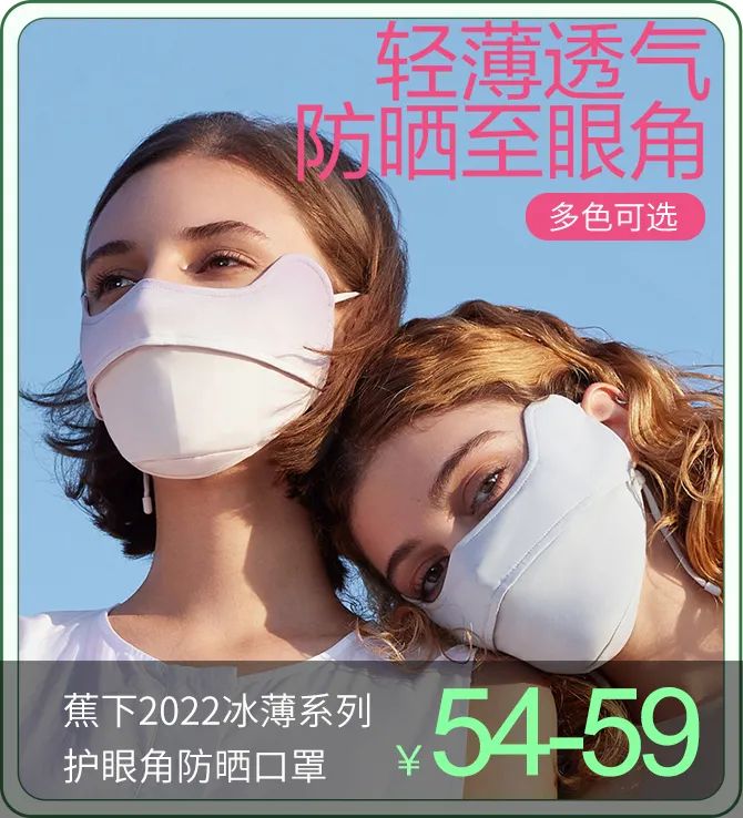 蕉下的防晒口罩真的完全挑不出毛病,尤其是今年出的几个新色,我真的太爱了,自带腮红,满满的氛围感。