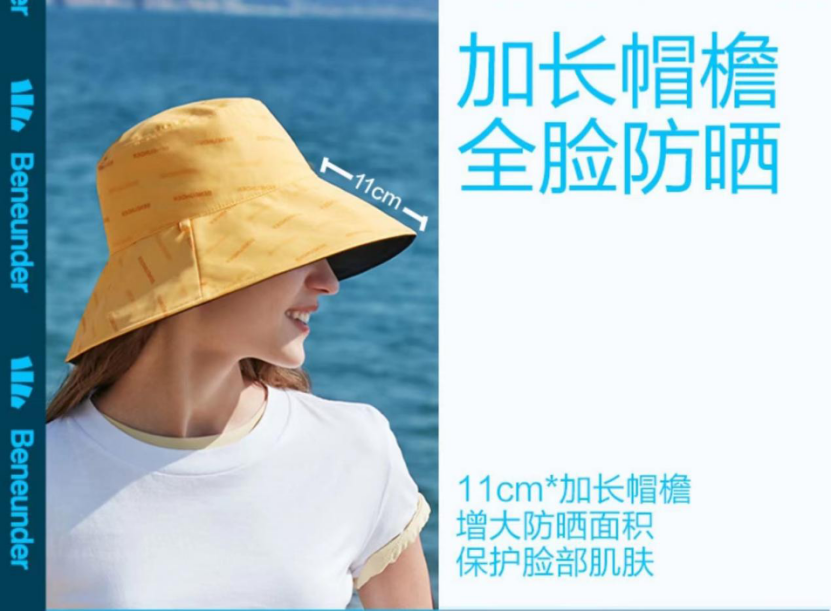 高防晒UPF50+,紫外线隔绝率≥98%,而且还是双面防晒材料,真的是满满的安全感,2022年升级款更是将帽檐宽度增加至11cm,真正的做到了全脸防晒