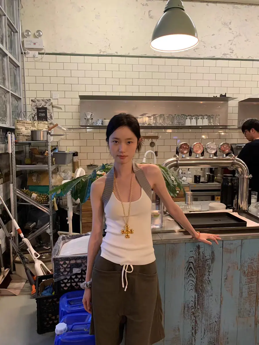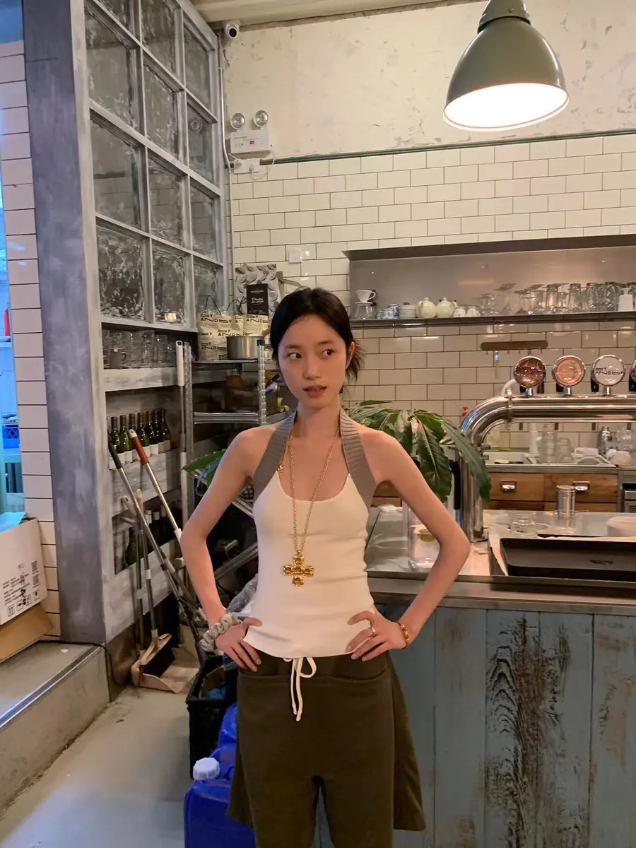 新品上身 | 挂脖背心加卫裤,在简明着装中绽放舒然🍥
