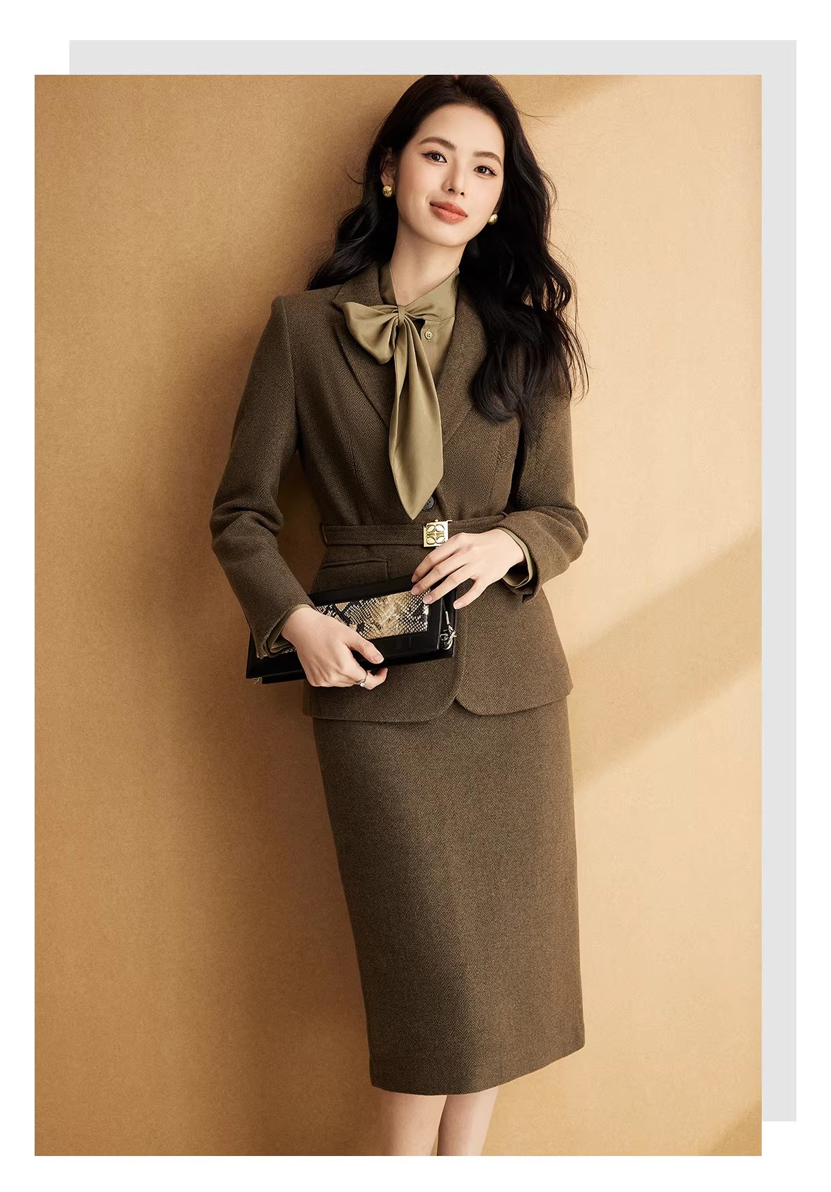 干练里裹着点柔媚,通勤也能穿得 “不无聊”。