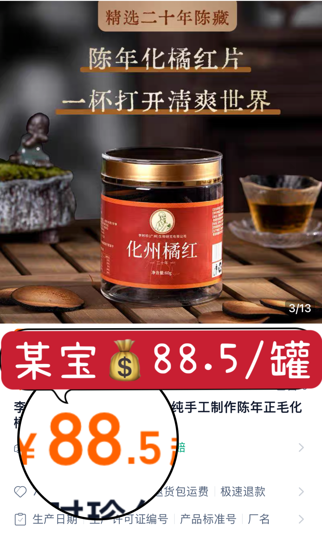 某宝同款88.5/罐,粉丝福利69/罐