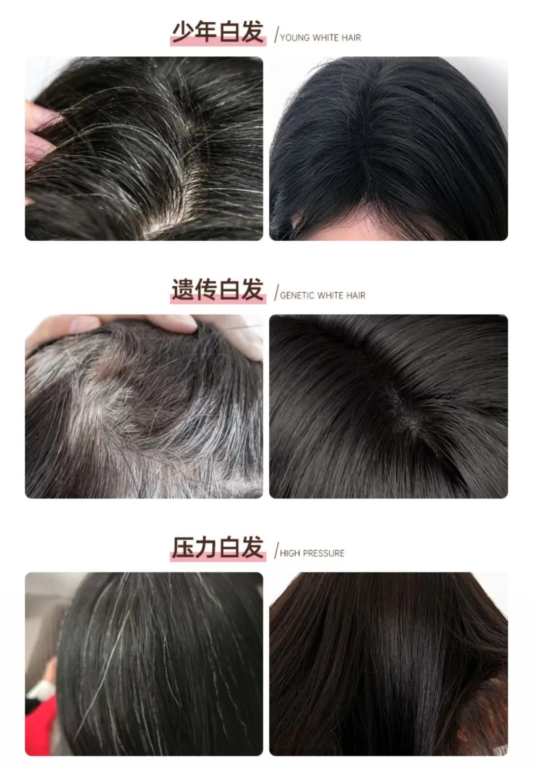 而且,它不止只针对白发这个问题,还可以控油蓬松+柔顺头发!