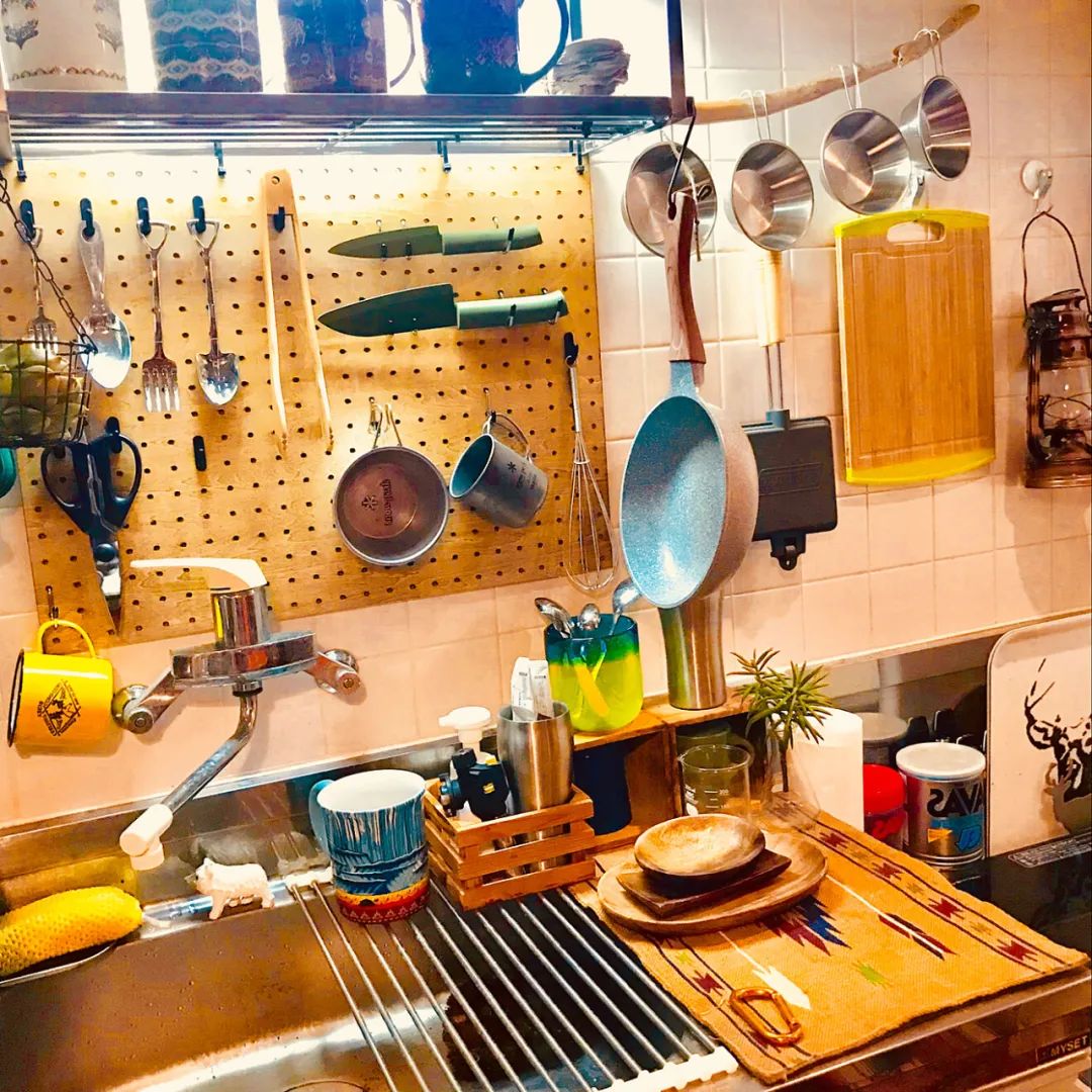 如何打造一个户外风格浓郁的家?选好一面空墙壁,利用各种商超常用的展示架,以及你的巧思。