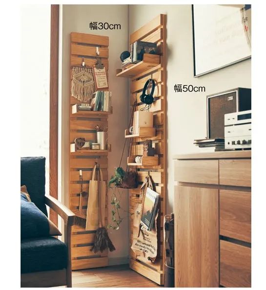 木质搁板本身就是不少家庭的收纳选择。它的天然质地和户外装备的气息非常相投。
