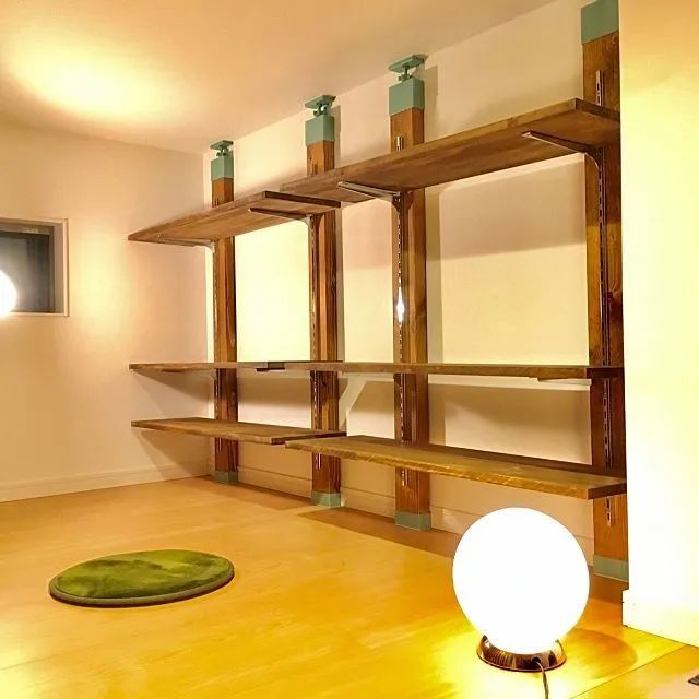 除了在墙面打孔,还可利用房顶和地面,来构造一个“顶天立地”式的置物架,或者直接打造一个落地式的置物架。搬家时还可以直接带走。使用时要注意两侧承重平衡的问题。