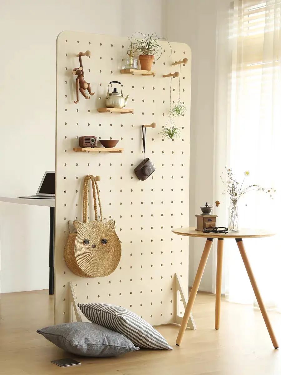比如,搭配木质搁板和洞洞板,并根据需要灵活调整搁板高度。