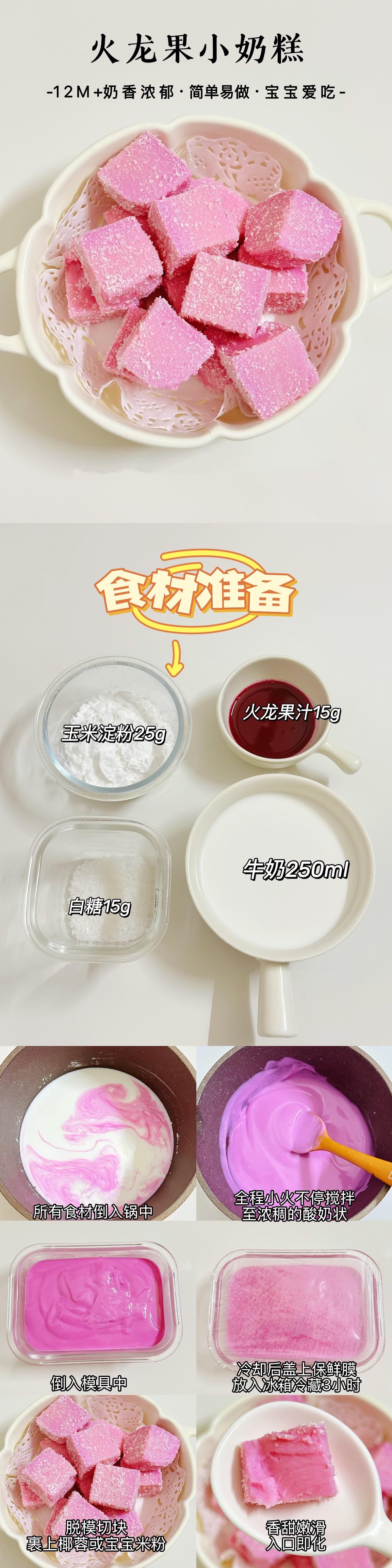 🍧解锁宝宝辅食新花样!这款火龙果小奶糕,不仅颜色粉嫩超吸睛,口感更是QQ弹弹、清甜爽滑,还能呵护宝宝肠胃,改善便秘~无需烤箱,轻松几步就能做出Q弹可口的小甜点!