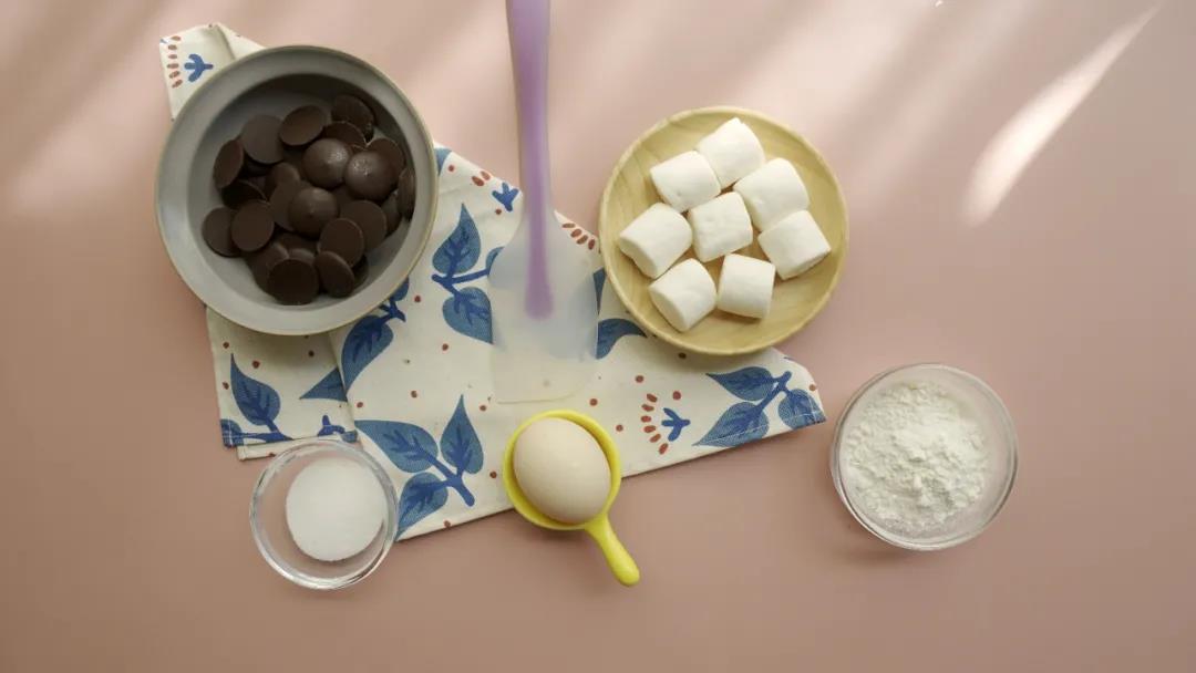 今天就教大家做一款棉花糖做夹心的巧克力布雪蛋糕,中间的夹心细腻香浓滑溜溜,一口咬下去是双重口感接连的体验!