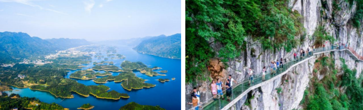 ● 鄂东南首条悬崖观湖玻璃栈道,全长1018米,全国独一无二的变形崖廊