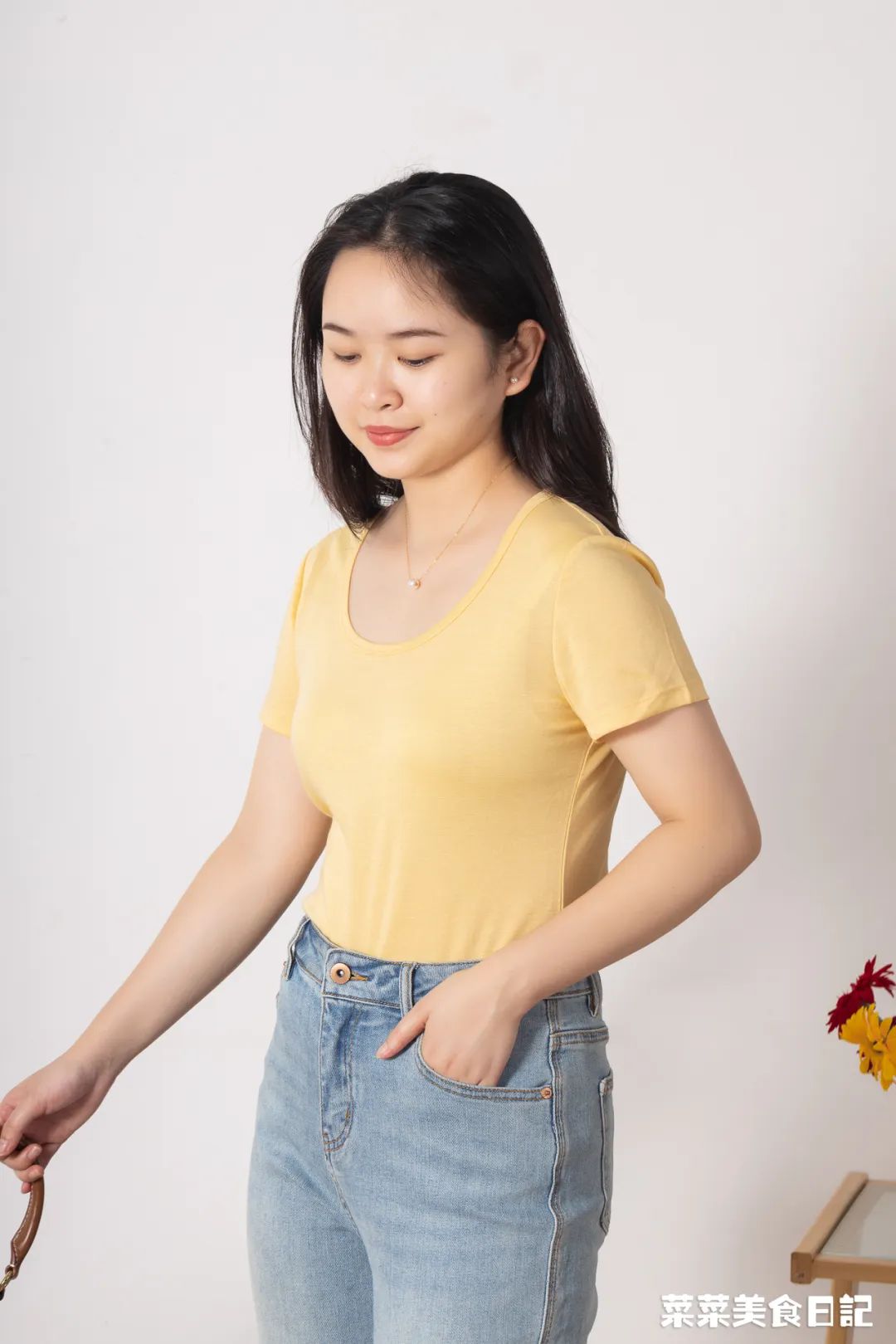 “这个U领也太显瘦了,肉都少10斤的感觉”