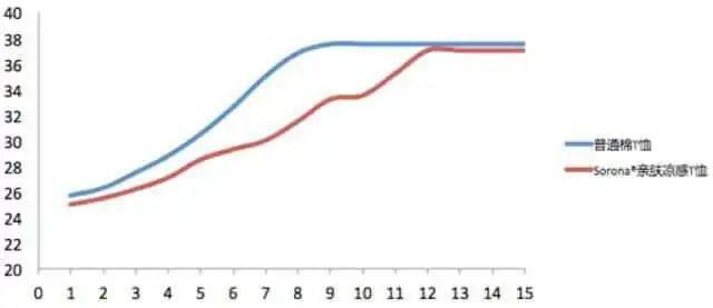 在条件相同情况下,索罗娜凉感纤维的温度明显比普通棉料低。