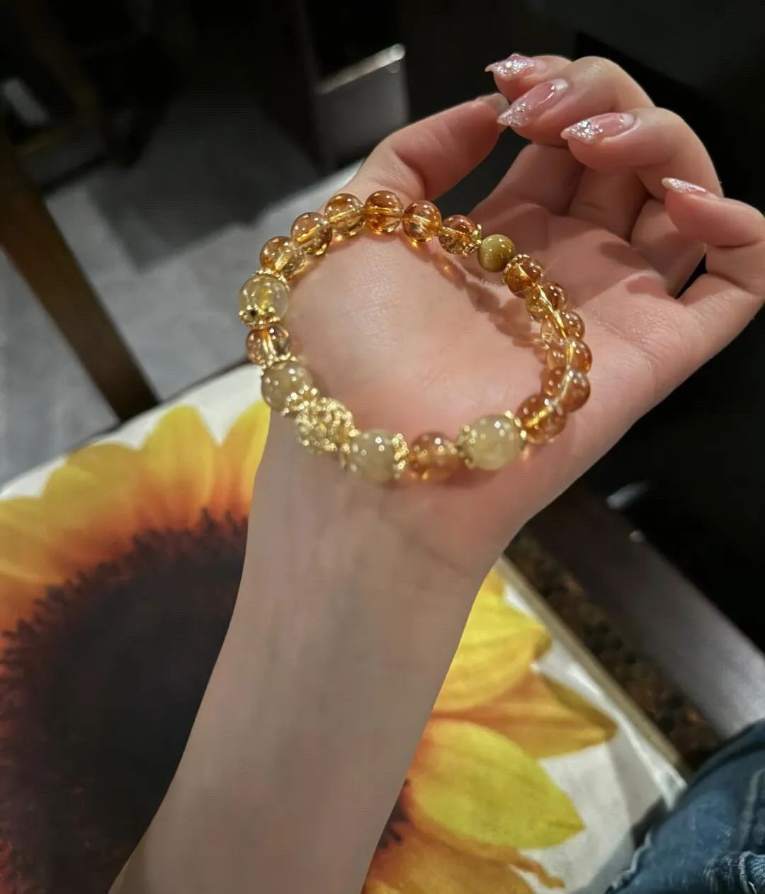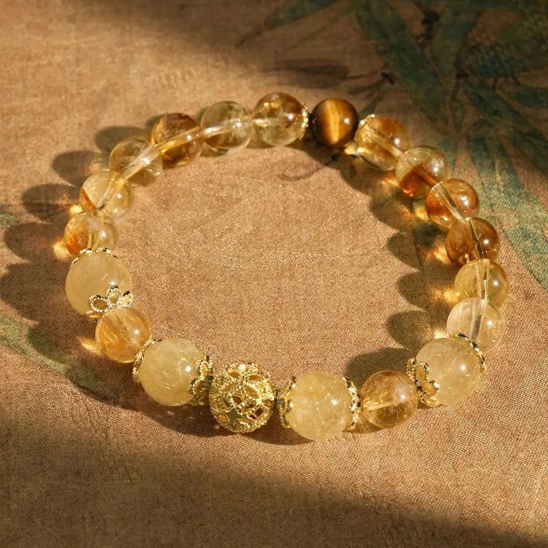 八方来财黄水晶:约22颗天然黄水晶串成,莹润生财~