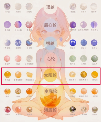 对应人体7大脉轮中的太阳轮,在古希腊被称为“太阳石”,温和的黄光不仅能清理囤积在太阳轮的负能量,还能让整个人散发正能量。