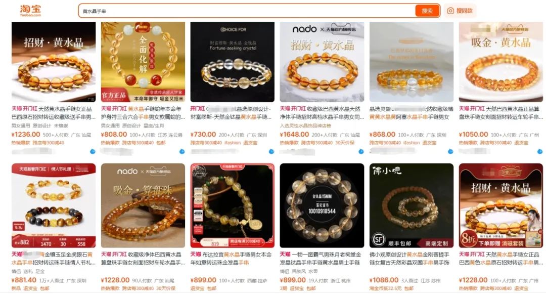 市面上的黄水晶手串一搜都要几百到上千,价格虚高数不胜数: