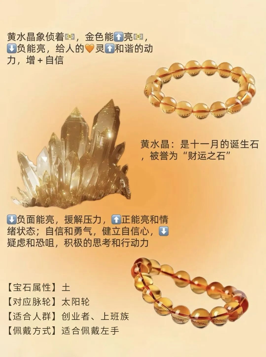在2025年黄色的运用可谓是开启财富的逆袭,黄水晶补土生金,是招财类水晶的佳选。