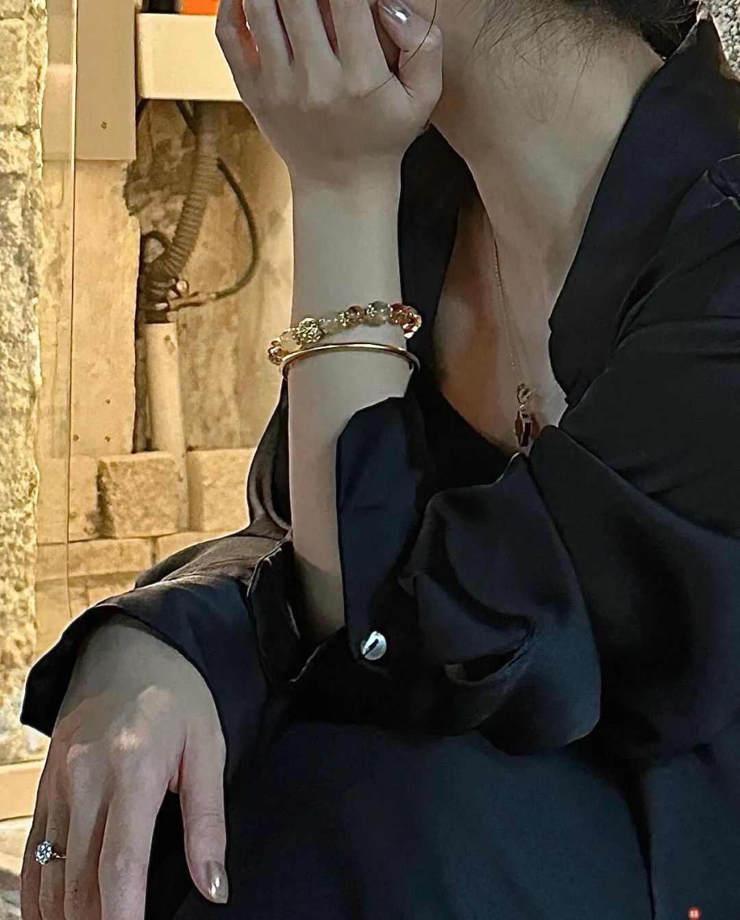 戴上金灿灿的,光影穿过晶体,仿佛光在跳舞,把手腕衬得贵气又好看。