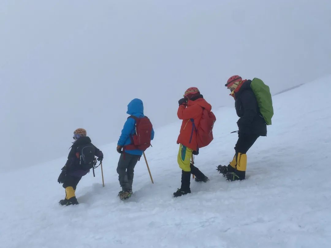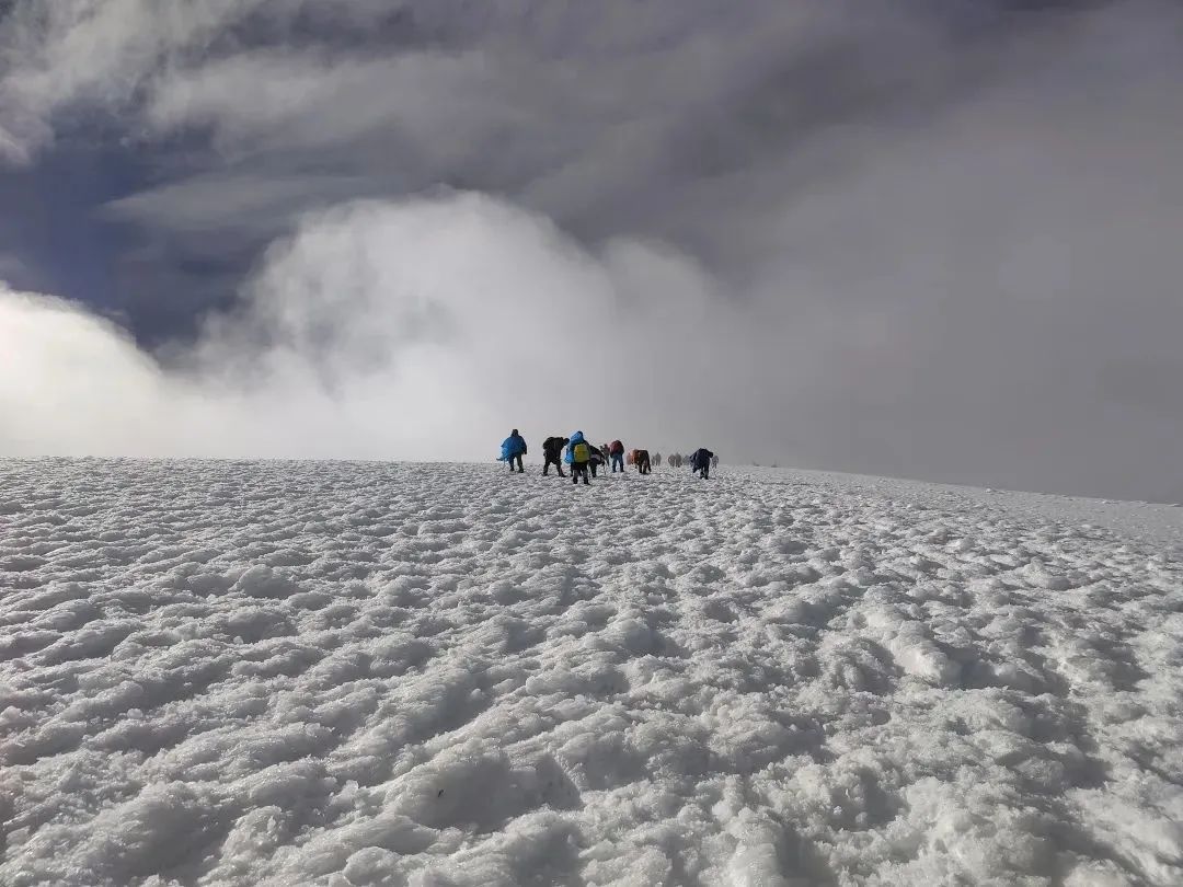 冲顶的距离不长,只有 5 公里左右,但有 1300 米的爬升,在海拔 4500 以下,一路能遇到很多中途放弃下撤的人,或因为高反,或因为实在走不动了。