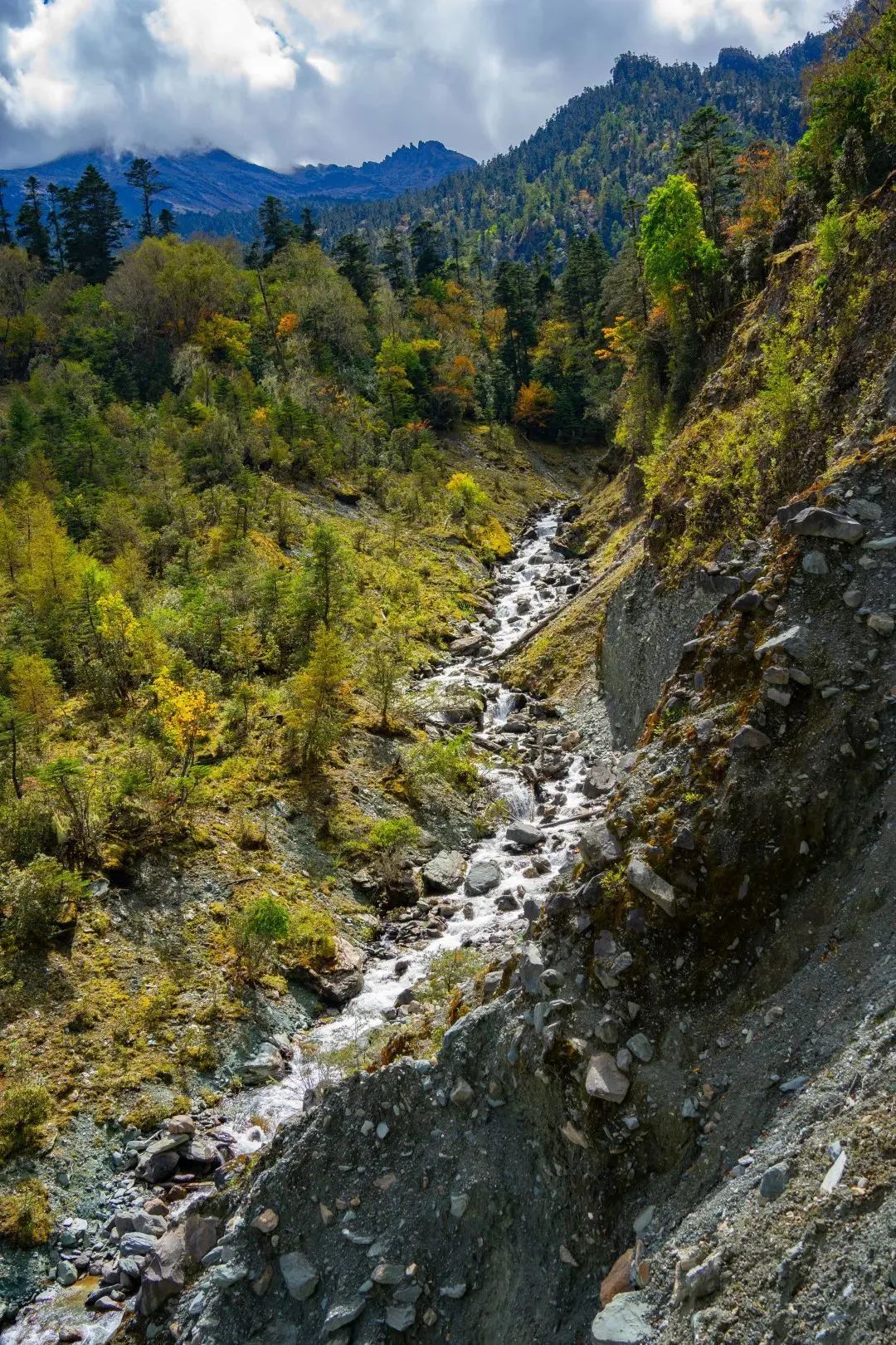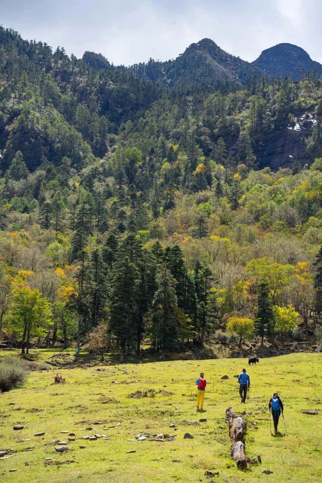 从哈巴村到哈巴大本营的前半段在平缓爬升,此时云南已经开始有了秋意,随着海拔的上升,这些树林也开始发生了色彩的变化。