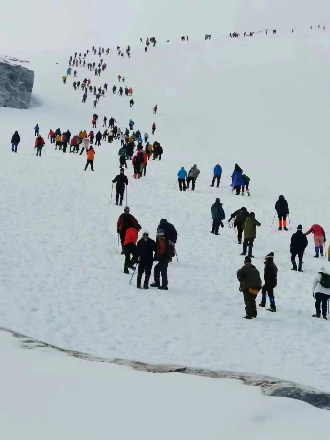 海拔 5200 米的绝望坡人头攒动,一眼望过去以为是某个滑雪场的下饺子式体验,看到这张图的网友们对此大惊:“徒步登山已经这么火了?”