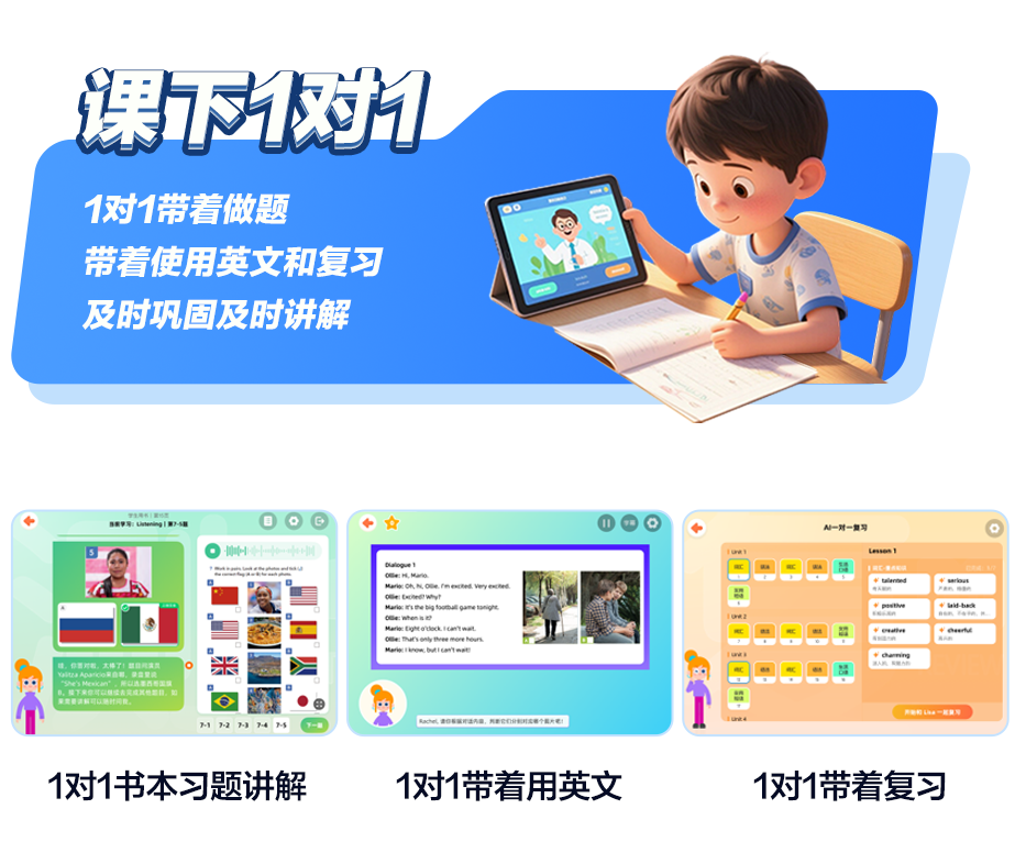 它集结了 权威原版教材、AI中外教1对1授课、超高性价比三大优势,真正做到“懂孩子、教得好、会陪伴”,让英语学习更轻松、更高效、更实用。