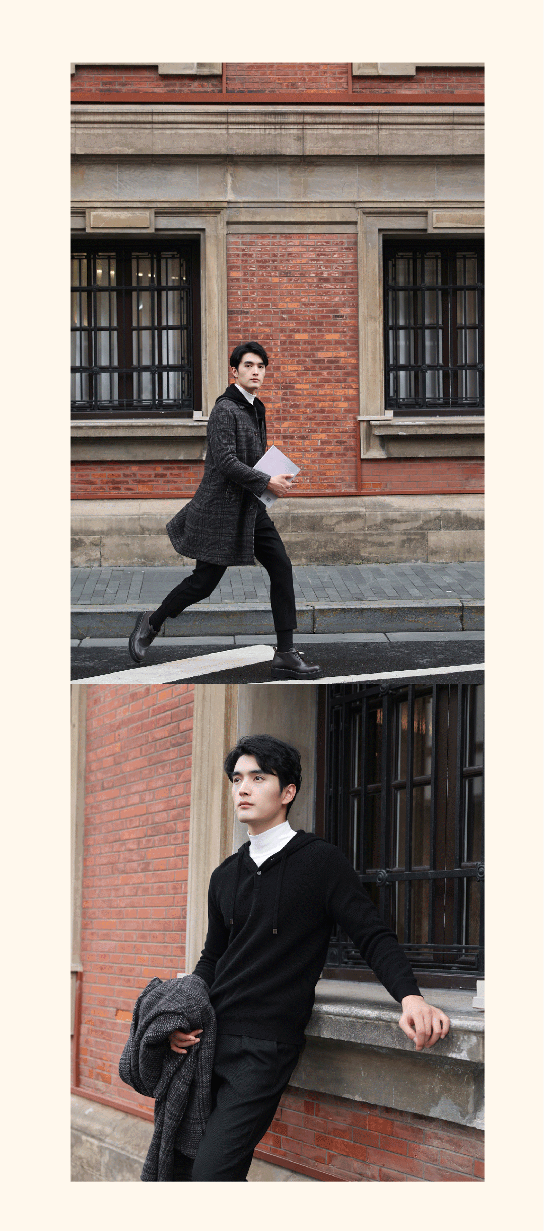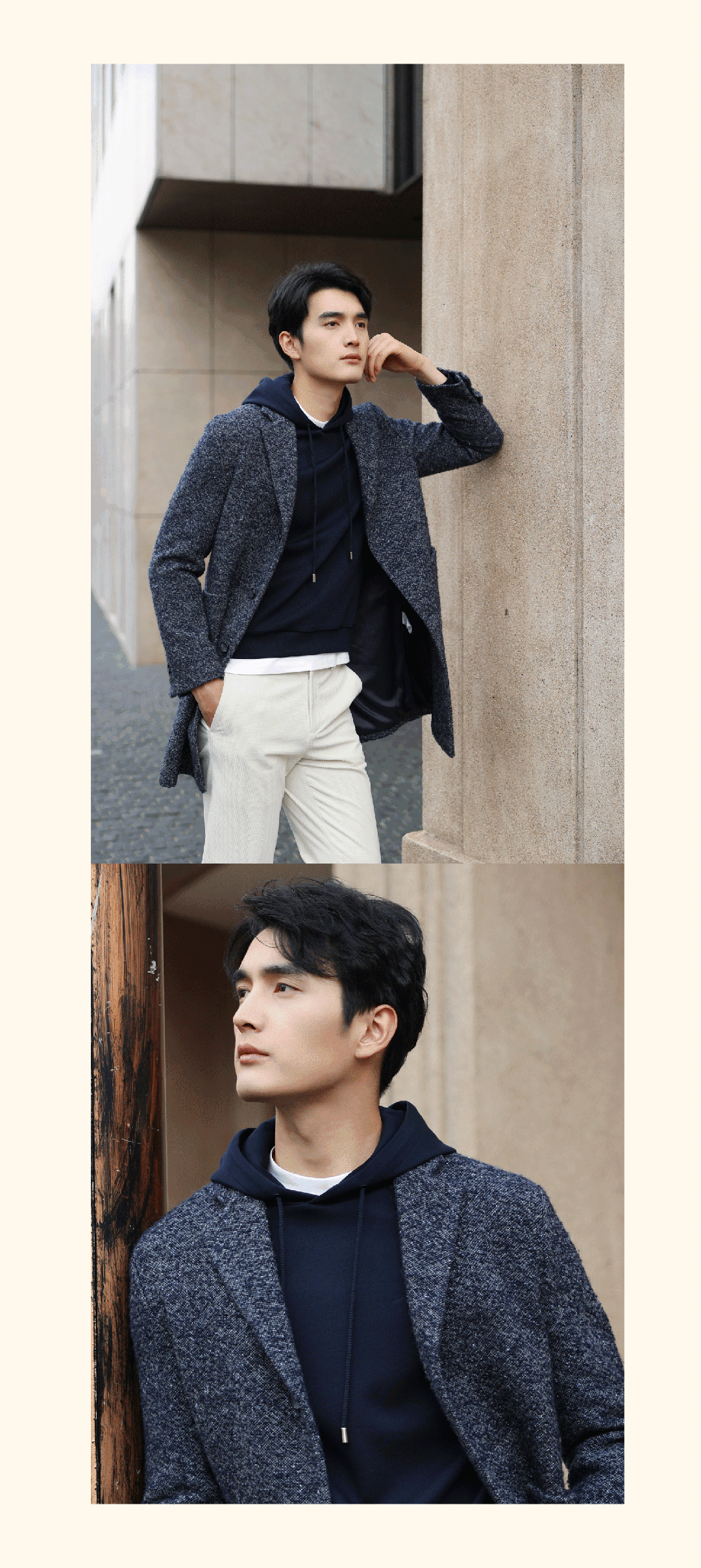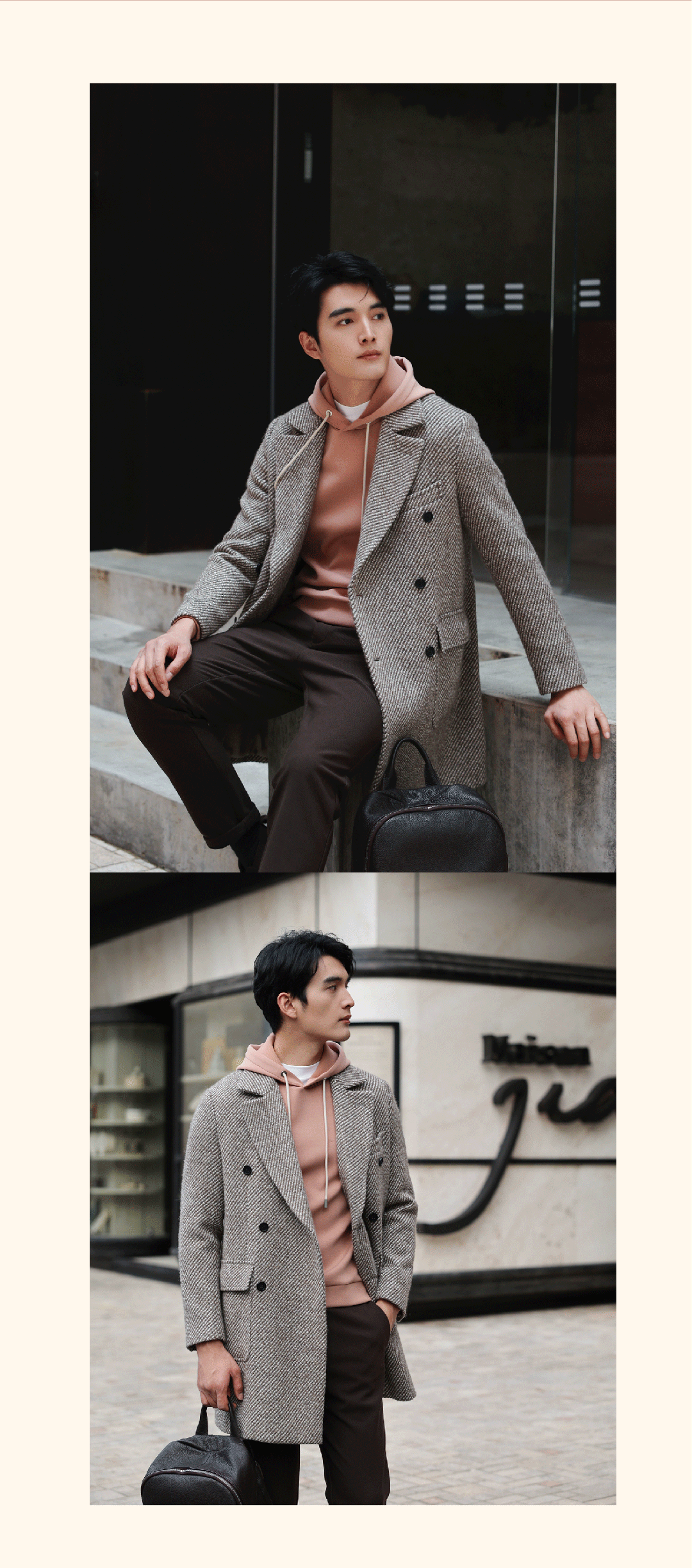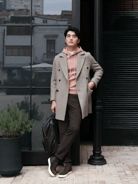 大衣+卫衣,更松弛