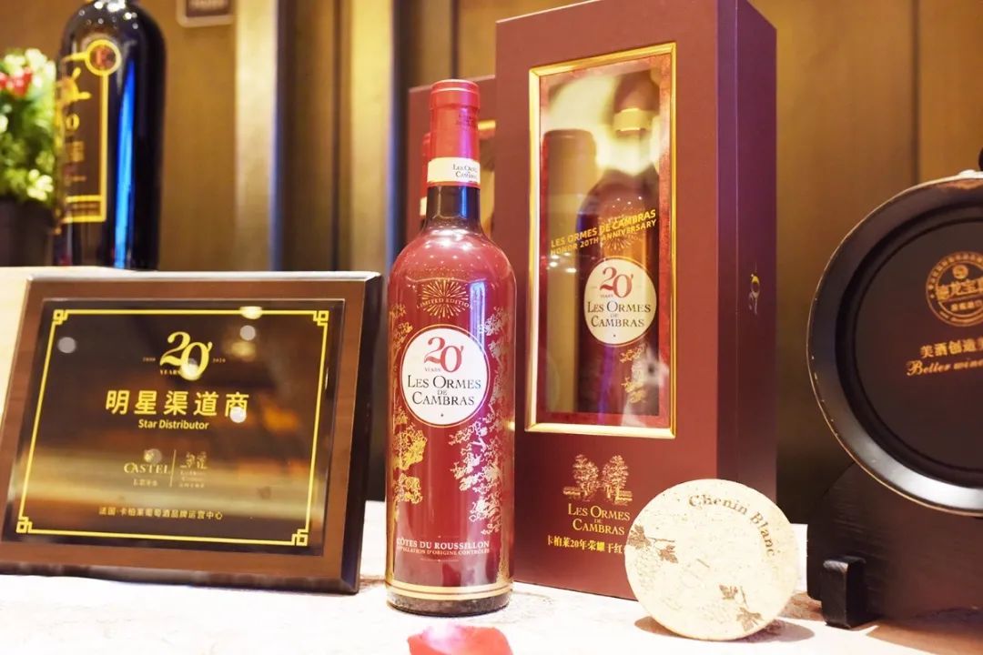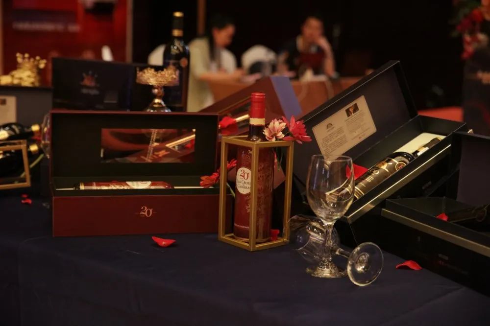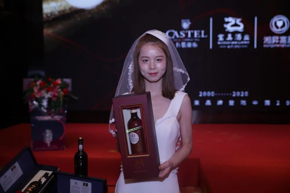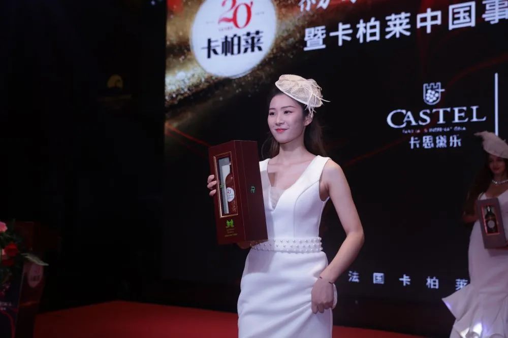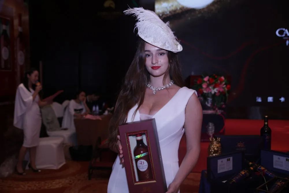 随后在主持人的介绍下,作为今晚最为亮丽的主角,卡柏莱20年荣耀干红葡萄酒隆重登场。
