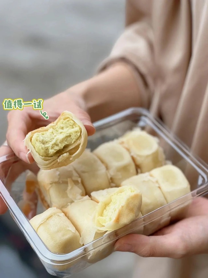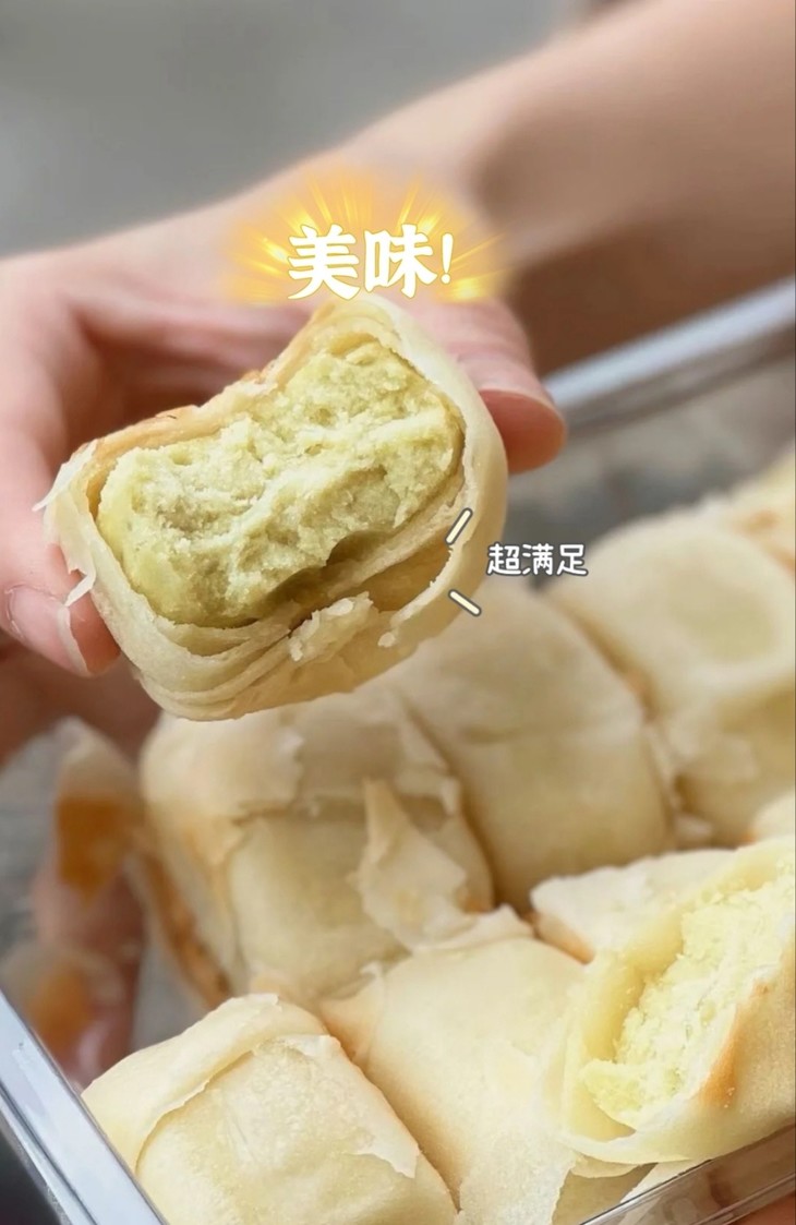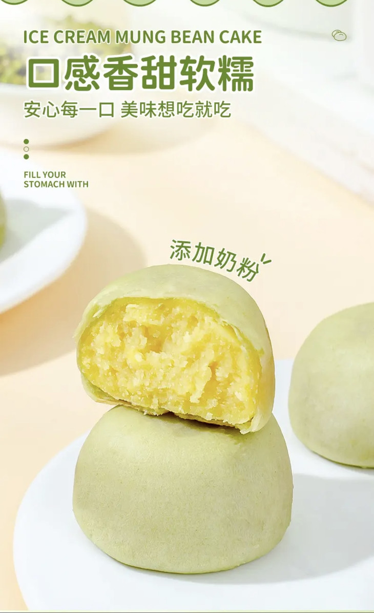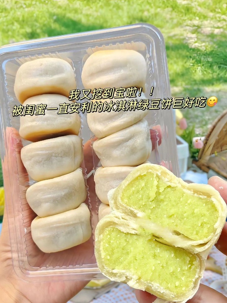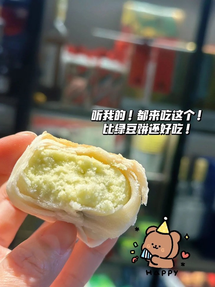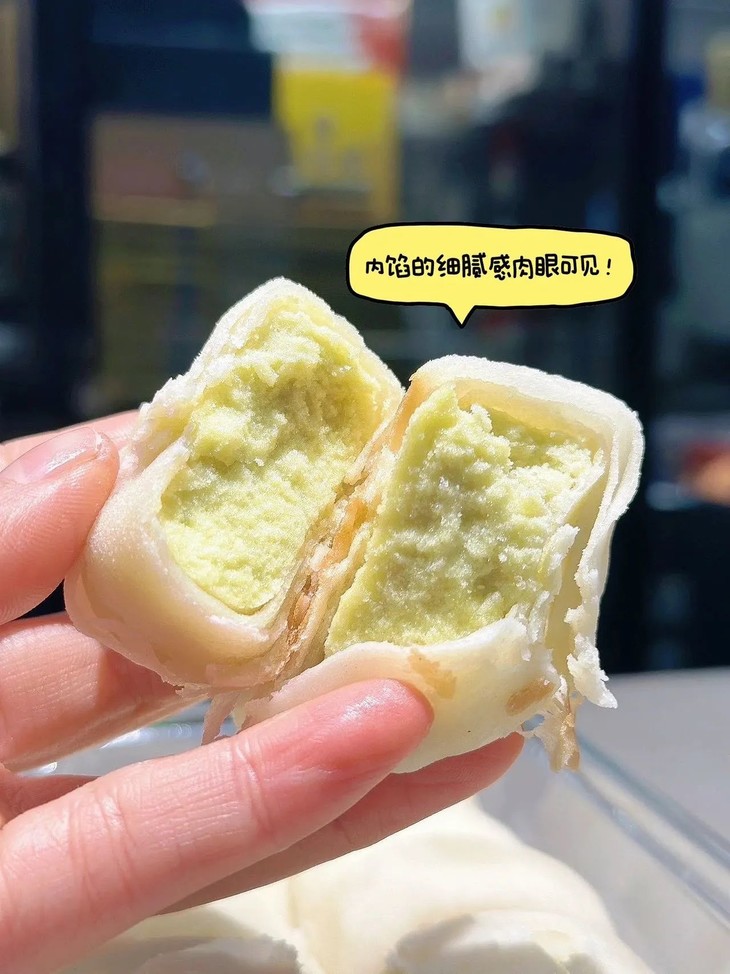 吃过冰淇淋口感的饼没?这个口感太神奇了它是软皮的,皮很薄口感糯糯的有种入口即化的感觉带绿豆清香的冰淇淋味🤭饼控的姐妹们一定要尝,口感太惊艳了快点去尝,用文字形容不出来它的好吃