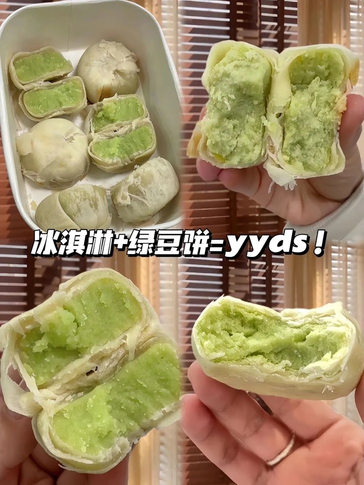 宝子们,以前的绿豆饼都白吃啦!吃过冰淇淋绿豆饼才知道绿豆饼的天花板在哪里到底谁来管管啊怎么能那么好吃真的想问!!一个绿豆饼做这么好吃是要去参赛吗!!